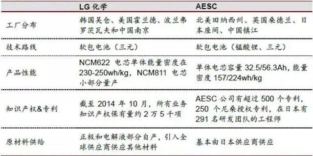 全球软包市场的格局,目前海外软包电池市场主要由 LGC 和 AESC 把控。LGC 主要配套日产、雷诺、现代、通用、沃尔沃、奥迪等厂商,目前公司 NCM622 软包电芯能量密度可做到 240wh/kg 左右,并将在 2018 年小部分量产 NCM811 电芯(目前配套现代 Kona(参数|图片))。 AESC 主要配套日产的车型,包括备受好评的 Leaf,主要由于该公司是由日产汽车牵头设立的企业,定位于内部配套。公司主要走锰酸锂电池路线,源于 1)安全性高;2)锰储量丰富,价格较低。然而,由于车企对能量密度要求提升,锰酸锂路线面临边缘化风险,因此日产宣布将开放电池采购,引入 LGC,并出售旗下电池业务。根据公司官网,公司为最新款 Leaf 配套的软包电芯能量密度为 224wh/kg。 从销量看,2017 年和 2018 年一季度 LGC 和 AESC 主要配套的 Leaf、Ioniq(参数|图片)、ZOE(参数|图片) 持续位居全球销量前十。这也带动 LGC 销量一直维持在全球动力电池出货量前 10 的位置。